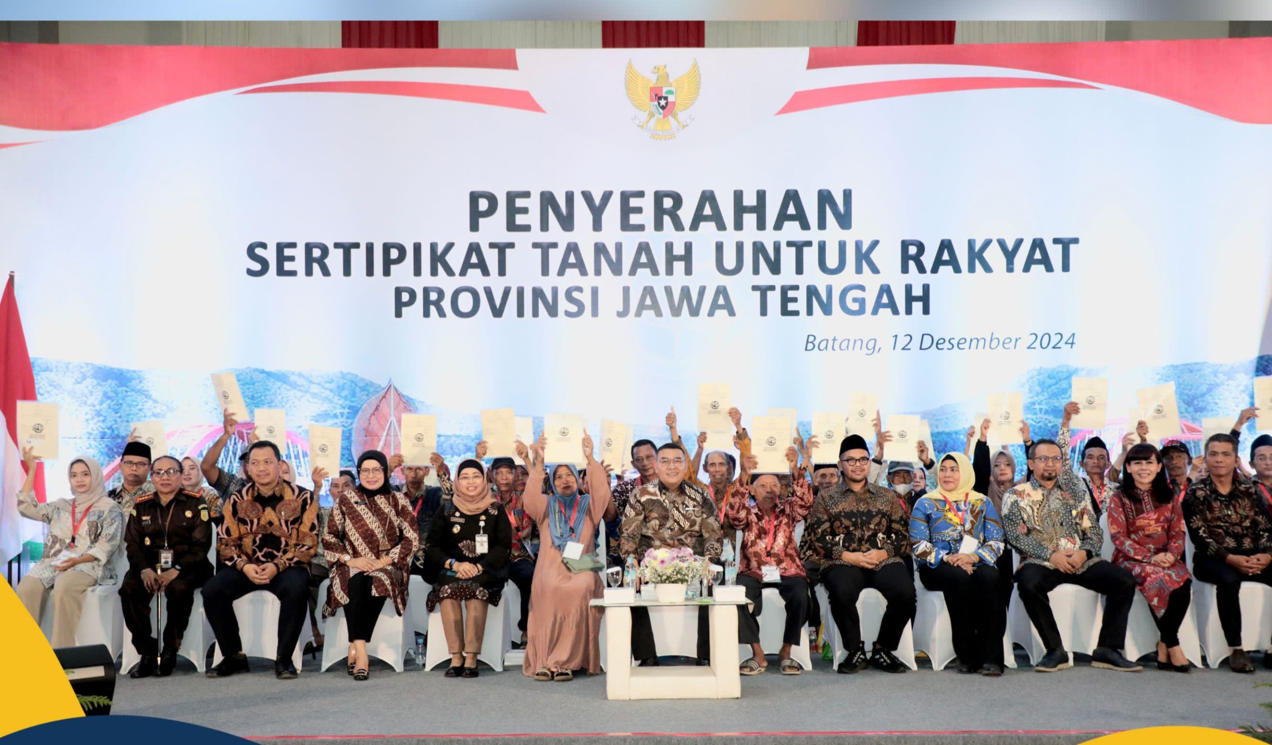 Dalam kegiatan ini, Wamen Ossy didampingi Plt. Kepala Kantor Wilayah BPN Provinsi Jawa Tengah, Sri Yanti Achmad dan Pj. Bupati Batang, Lani Dwi Rejeki untuk menyerahkan sertipikat tanah kepada 10 perwakilan penerima sertipikat. Kegiatan ini juga dihadiri oleh Bupati Batang terpilih, M. Faiz Kurniawan dan juga jajaran Forkopimda Provinsi Jawa Tengah beserta jajaran. (AR/MW)