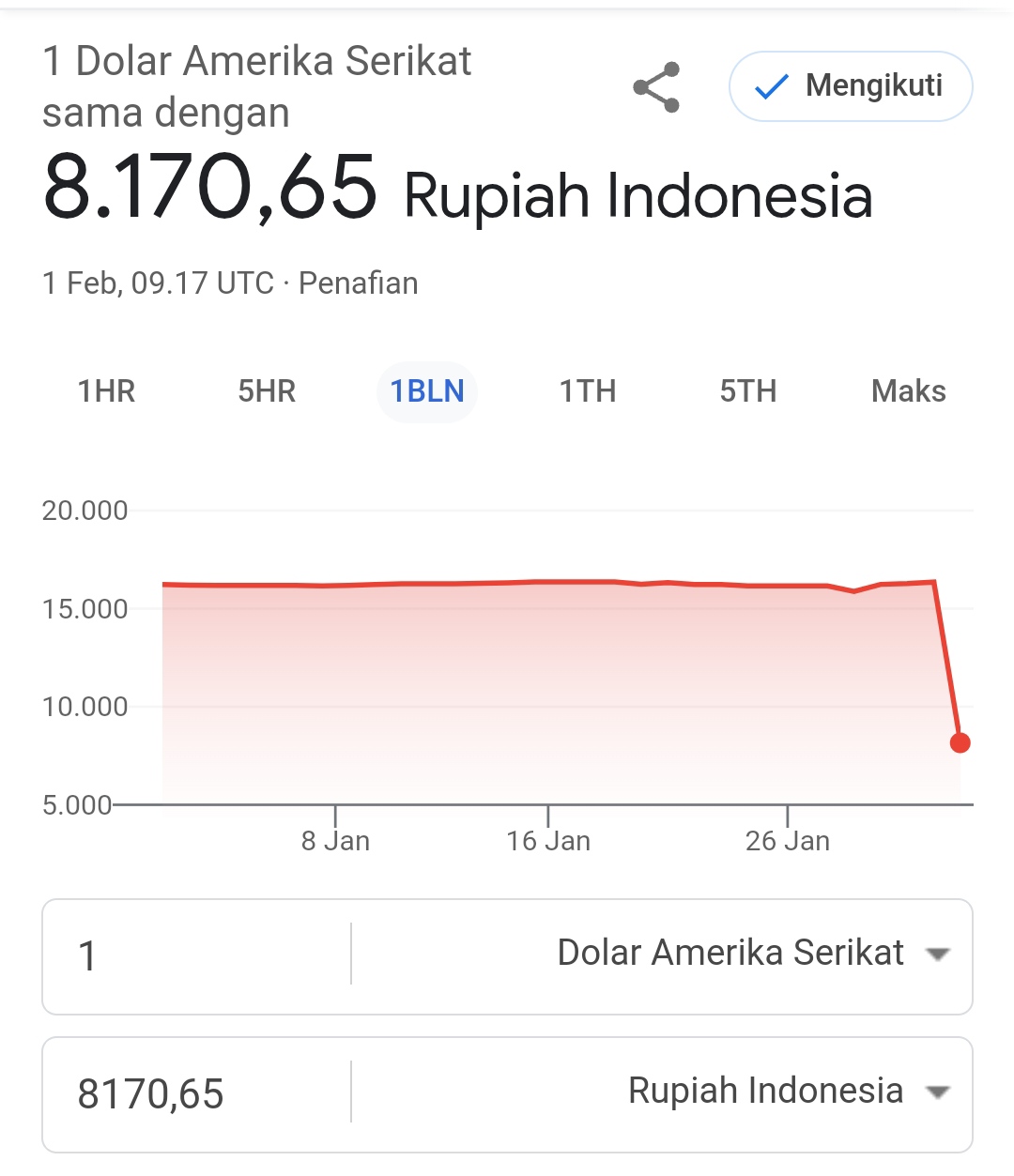 NARASI – Kabar mengejutkan pada 1 Februari 2025, Masyarakat tiba-tiba dihebohkan dengan menguatnya nilai tukar rupiah terhadap Dollar Amerika di angka Rp8.170 per 1 dollar.