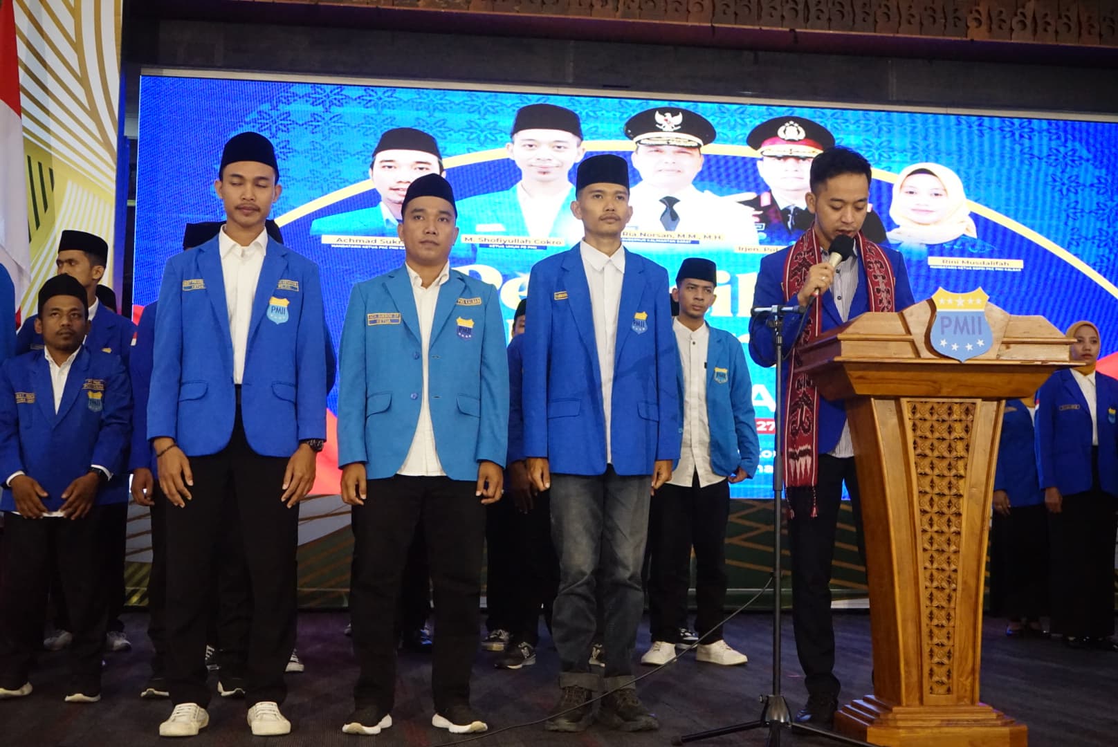 NARASI : Ketua Umum (Ketum) Pengurus Besar (PB) Pergerakan Mahasiswa Islam Indonesia (PMII) Mohammad Shofiyulloh Cokro secara resmi melantik Pengurus Koordinator Cabang (PKC) PMII Kalimantan Barat (Kalbar) periode 2025-2027 berlangsung di aula Pondopo Gubernur Kalbar, Sabtu (21/6/2025).