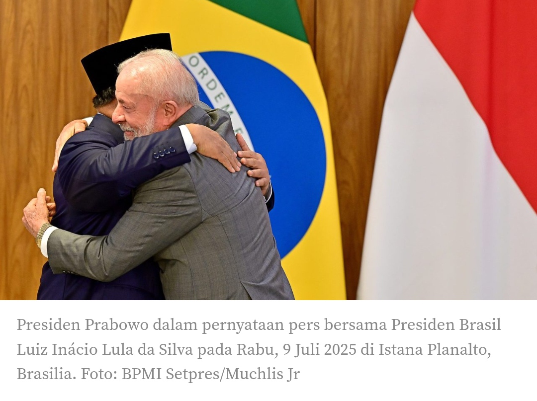 Pernyataan tersebut disampaikan Presiden Prabawo dalam pernyataan pers bersama Presiden Brasil Luiz Inácio Lula da Silva pada Rabu, 9 Juli 2025, di Istana Planalto, Brasilia.