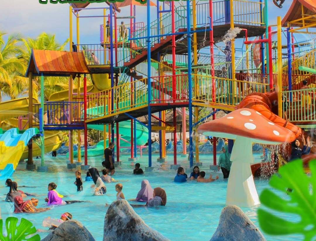Ada wahana waterboom, kolam anak, kolam ombak, kolam arus, kolam orang dewasa, penyewaan pelampung, kamar mandi untuk bilas dan banyak fasilitas lainnya.