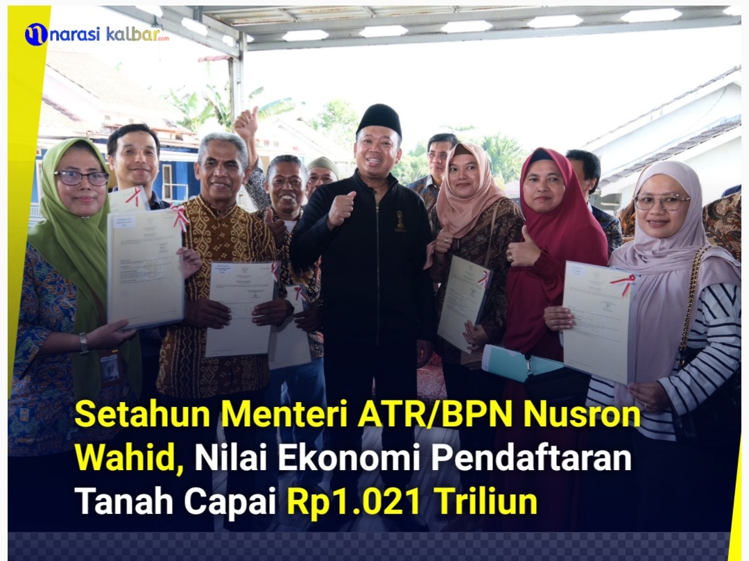 Menteri ATR/BPN), Nusron Wahid menyebut dalam kurun waktu satu tahun sejak Oktober 2024 hingga Oktober 2025 masa kepemimpinannya terus menunjukkan peningkatan signifikan pada program pendaftaran tanah.