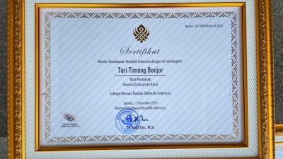 NARASIKALBAR.COM, PONTIANAK – Dua kekayaan budaya khas Kota Pontianak, yakni Kue Batang Burok dan Tari Timang Banjar, resmi ditetapkan sebagai Warisan Budaya Takbenda (WBTb) Indonesia oleh Kementerian Kebudayaan Republik Indonesia. Sertifikat penetapan tersebut diserahkan langsung oleh Gubernur Kalimantan Barat (Kalbar) Ria Norsan pada peringatan Hari Ulang Tahun ke-69 Pemerintah Provinsi Kalimantan Barat, Rabu (28/1/2026).