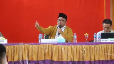 NARASIKALBAR.COM, LANDAK – Pemerintah Kabupaten Landak bersama Kantor Pertanahan Kabupaten Landak dan Tim Badan Bank Tanah memberikan sosialisasi lahan bekas HGU PT Aria kepada masyarakat Desa Nyayum dan sekitarnya di Aula Bappeda Kabupaten Landak. Senin, 13 April 2026.