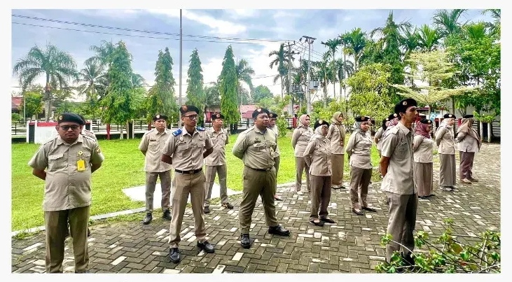 melaksanakan apel pagi sebagai bagian dari upaya penguatan disiplin aparatur dan peningkatan kualitas pelayanan publik.